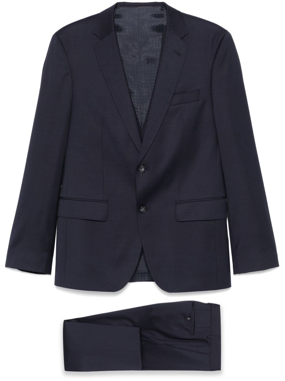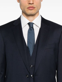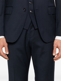 patterned three-piece suit Highlights - Navy blue Imported Composition Outer: Virgin Wool 99%, Elastane 1% Lining: Viscose 65%, Polyester 35% SIZE & FIT Model measurements Height 6 ft 1 in(1.86 m) Bust/Chest 37.4 in(95 cm) Hips 36.22 in(92 cm) Waist 29.52 in(75 cm) FittingInformation Tailored for a slim fit, offering a comfortable fit that sits just away from the body The internal shoulder pads offer a structured shape Made from a midweight fabric