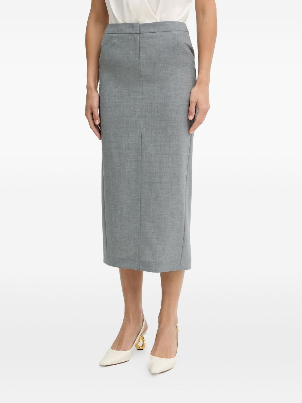 pencil midi skirt Highlights - Grey - Centre back vent - Welt pockets - Straight hem Imported Composition Outer: Virgin Wool 100% Lining: Polyester 55%, Viscose 45% Washing instructions Read Manufacturer Guidelines