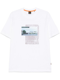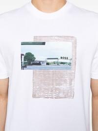 photograph-print T-shirt Highlights - White - Crew neck - Short sleeves - Raised logo detail - Mini logo tag Imported Composition Regenerative Cotton 60%, Cotton 40% SIZE & FIT Model measurements Height 6 ft 1 in(1.85 m) Bust/Chest 35.82 in(91 cm) Hips 37.79 in(96 cm) Waist 29.13 in(74 cm) FittingInformation Designed for a regular fit allowing for a comfortably loose fit throughout the body Made from a midweight non-stretch fabric, this piece offers minimal elasticity when worn