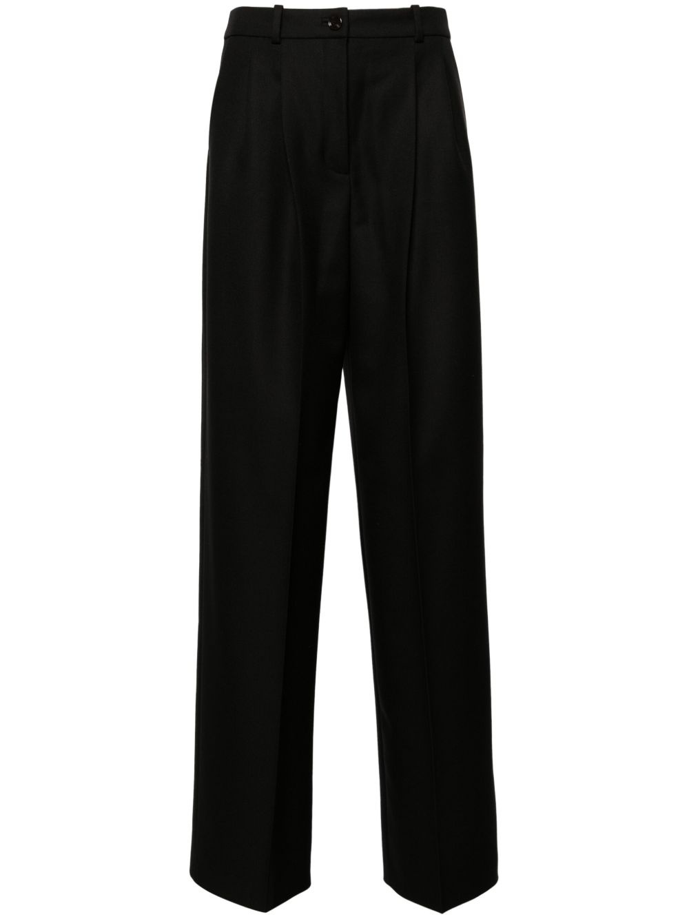 pleat-detailed virgin wool trousers Highlights - Black - Virgin wool - Twill weave - Silver-tone logo plaque - Button fly fastening - Belt loops - Pleat detailing - Straight leg - Two side slit pockets - Two rear welt pockets Imported Composition Outer: Virgin Wool 100% Lining: Cotton 100% SIZE & FIT Model measurements Height 5 ft 11 in(1.8 m) Bust/Chest 33.07 in(84 cm) Hips 37.4 in(95 cm) Waist 25.19 in(64 cm) FittingInformation Designed for a straight-leg fit, these trousers allow for a close fit at the waist and an unrestricted, comfortable fit over the leg Made from a midweight non-stretch fabric This piece fits true to size – take your usual size