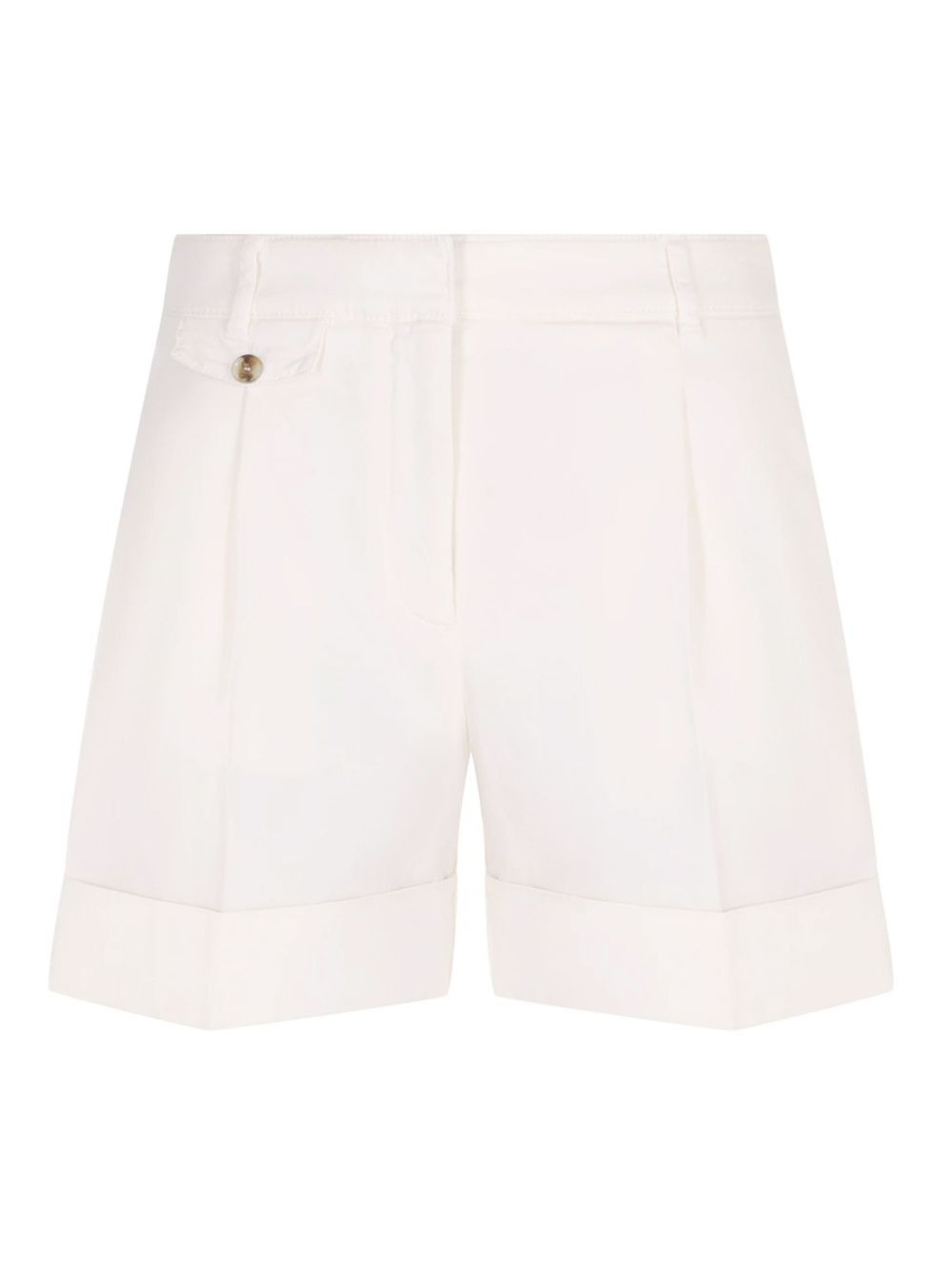 pleated-front cuffed shorts Highlights - White - Pleated front - Cuffed hem - Side-seam pockets Imported Composition Outer: Cotton 98%, Elastane 2% Lining: Cotton 100%