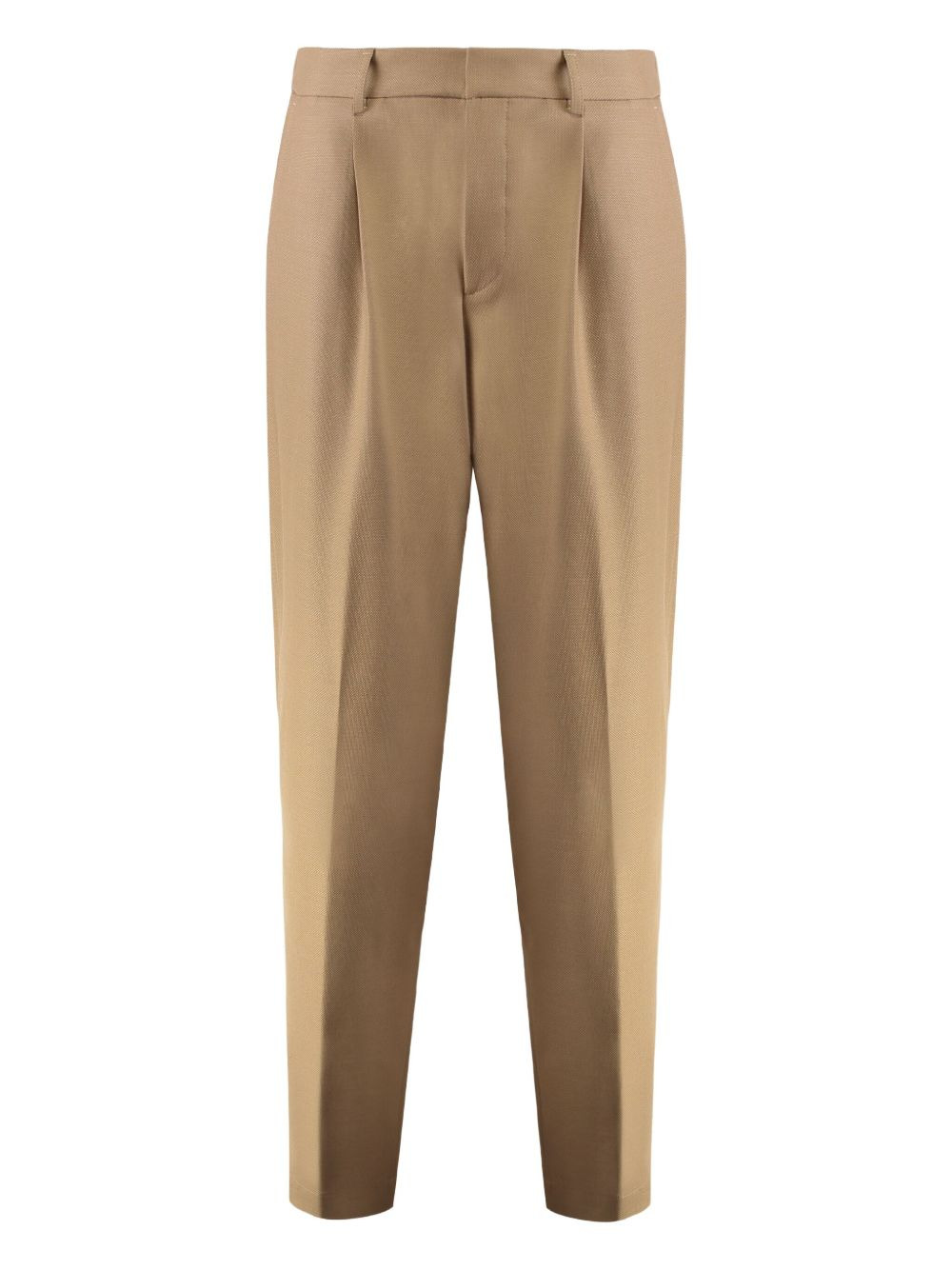 pleated-front trousers Highlights - Light brown - Pleated front - Side slash pockets - Welt back pockets - Elasticated waistband Imported Composition Outer: Polyester 47%, Wool 29%, Viscose 20%, Elastane 4% Lining: Polyester 65%, Cotton 35% Washing instructions Read Manufacturer Guidelines