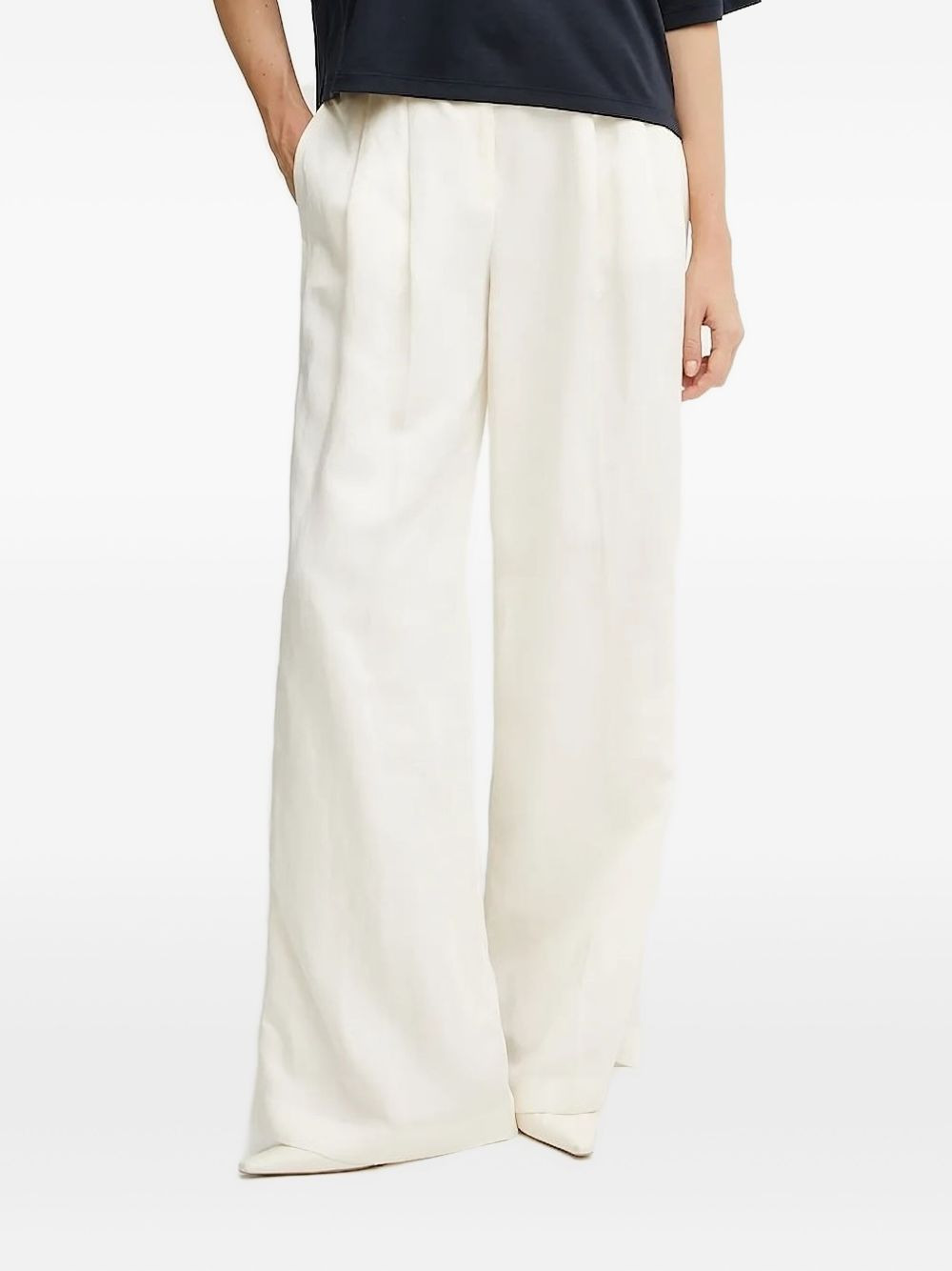 pleated trousers Highlights - Off-white - Pleated front - Elasticated waistband - Rear pocket - Logo plaque Imported Composition Lyocell 60%, Linen/Flax 40% Washing instructions Read Manufacturer Guidelines