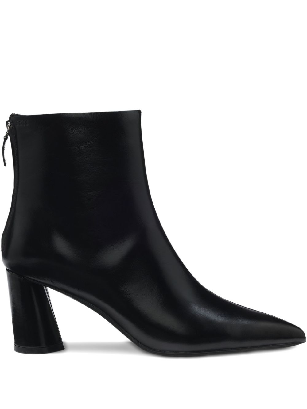 pointed-toe block-heel boots Highlights - Black - Leather upper - Pointed toe - Block heel - Rear zip fastening - Cylindrical heel Imported Composition Lining: Calf Leather 100% Sole: Rubber 100% Outer: Calf Leather 100%