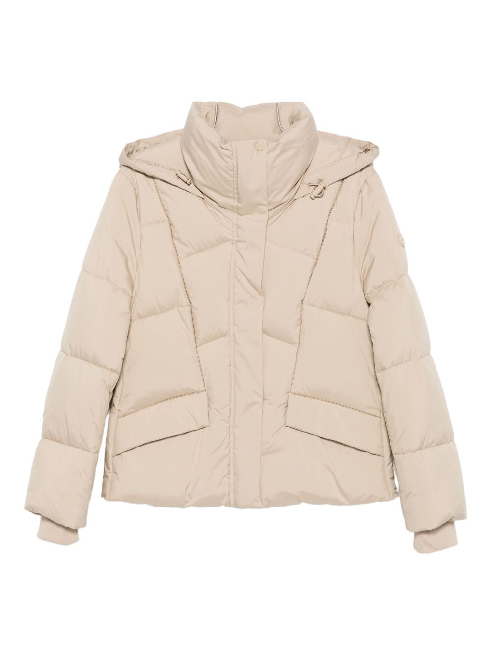 quilted zip-up puffer jacket Highlights - Beige - Quilted design - Classic hood - Snap button fastening - Long sleeves Imported Composition Lining: Polyamide 100%, Polyester 100% Outer: Recycled Polyester 60%, Polyester 40% Washing instructions Machine Wash