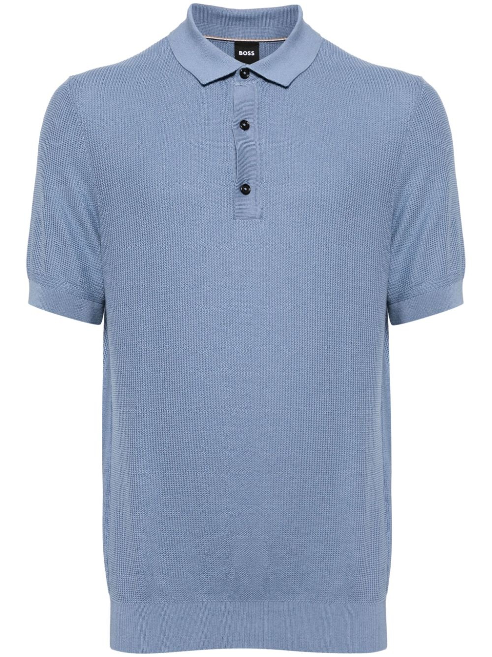 regular fit knit polo Highlights - Light blue - Cotton blend - Knitted construction - Polo collar - Front button placket - Short sleeves - Ribbed cuffs and hem - Regular fit Imported Composition Body: Cotton 50% Lyocell 50% SIZE & FIT Model measurements Height 6 ft 2 in(1.89 m) Bust/Chest 35.03 in(89 cm) Hips 34.64 in(88 cm) Waist 28.34 in(72 cm) FittingInformation Designed for a regular fit, this polo shirt offers a comfortable loose fit throughout the body The ribbed hem offers a close, comfortable fit Made with a midweight knit, this piece offers some stretch Washing instructions Machine Wash