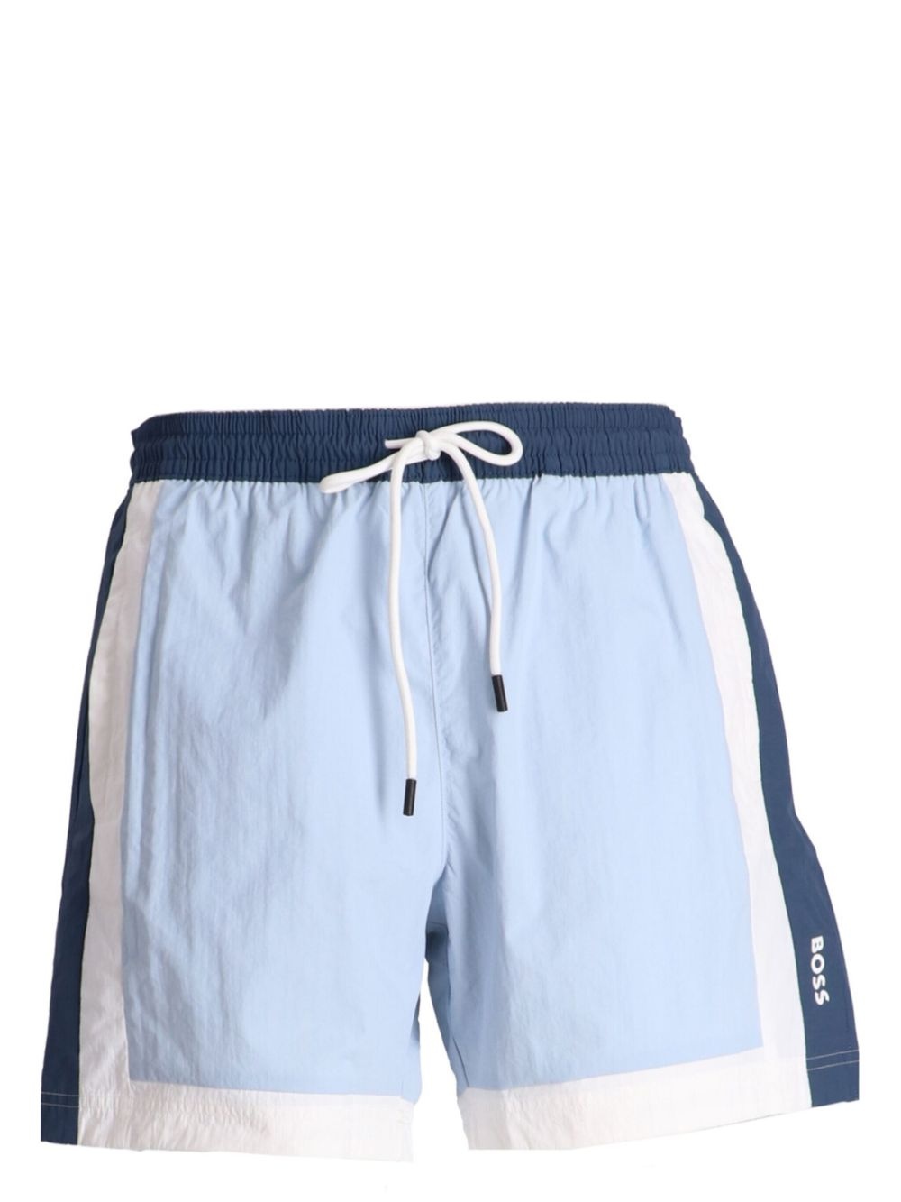 COLOR-BLOCK SWIM SHORTS WITH PRINTED LOGO