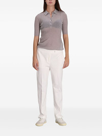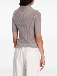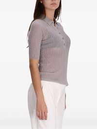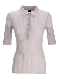 ribbed button polo top Highlights - Light grey - Ribbed knit - Button fastening - Polo collar - Short sleeves Imported Composition Virgin Wool 60%, Polyamide 40% Washing instructions Read Manufacturer Guidelines