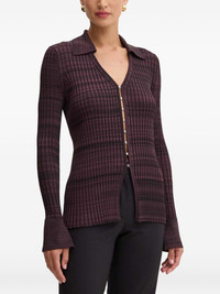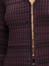 ribbed cardigan Highlights - Purple - Ribbed knit - Button fastening - Long sleeves - Patterned Imported Composition Recycled Viscose 86%, Polyamide 12%, Elastane 2% SIZE & FIT Measurement SLEEVE LENGTH 26.37 in(67 cm) LENGTH 25.19 in(64 cm) BUST 29.13 in(74 cm) Washing instructions Read Manufacturer Guidelines
