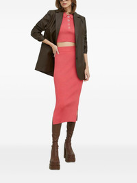 ribbed polo-neck crop top Highlights - Coral - Ribbed knit - Sleeveless - Polo collar Imported Composition Recycled Viscose 86%, Polyamide 12%, Elastane 2% Washing instructions Read Manufacturer Guidelines