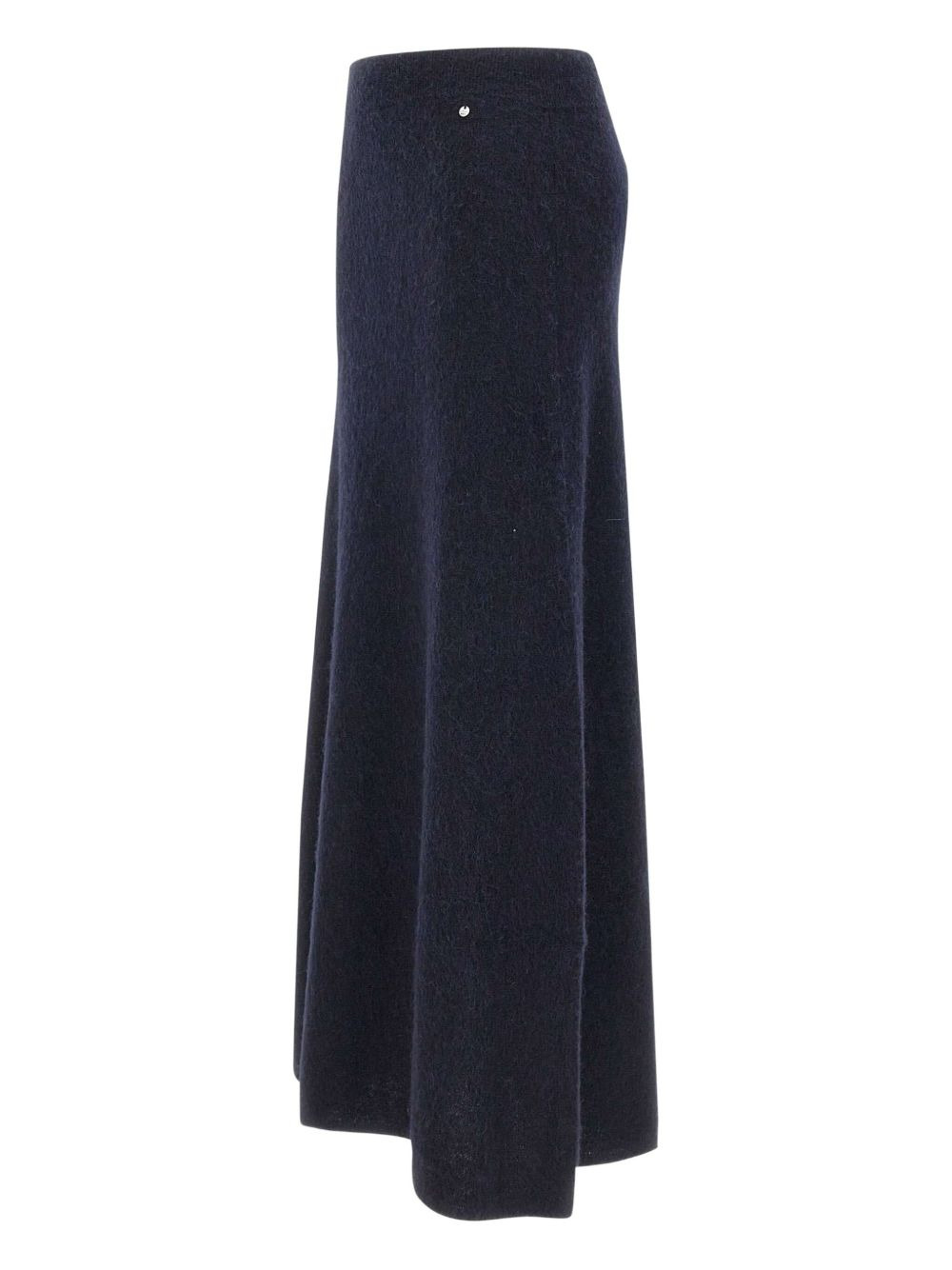 ribbed-waistband straight skirt Highlights - Dark blue - Ribbed waistband - Subtle round detail Imported Composition Polyester 58%, Wool 21%, Alpaca 21% Washing instructions Read Manufacturer Guidelines