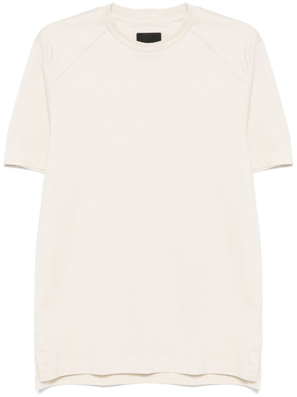ripstop T-shirt Highlights - Light beige - Combed cotton blend - Stretch-jersey - Ripstop texture - Panelled design - Crew neck - Short sleeves - Mini logo tag to the side - Short side slits - Straight hem Imported Composition Outer: Combed Cotton 95%, Elastane 5% Lining: Cotton 100% SIZE & FIT Model measurements Height 6 ft 1 in(1.86 m) Bust/Chest 36.61 in(93 cm) Hips 37 in(94 cm) Waist 28.74 in(73 cm) FittingInformation Designed to be loose and relaxed, this performance top comfortably allows for high-level movement when worn Made from a midweight stretch fabric, this piece offers elasticity and flexibility when worn Washing instructions Machine Wash