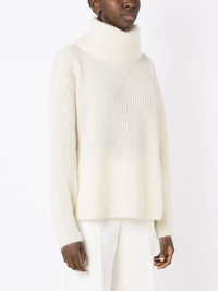 roll-neck chunky jumper Highlights - Cream white - Mohair blend - Chunky knit - Roll neck - Long sleeves - Straight hem Made in Italy Composition Mohair 67%, Polyamide 30%, Wool 3% SIZE & FIT Model measurements Height 5 ft 9 in(1.76 m) Bust/Chest 31.88 in(81 cm) Hips 35.43 in(90 cm) Waist 25.59 in(65 cm) FittingInformation Designed to be unstructured, offering a loose fit throughout Constructed with a narrow neckline Made with a midweight knit, this piece offers some stretch This piece fits true to size – take your usual size Washing instructions Hand Wash