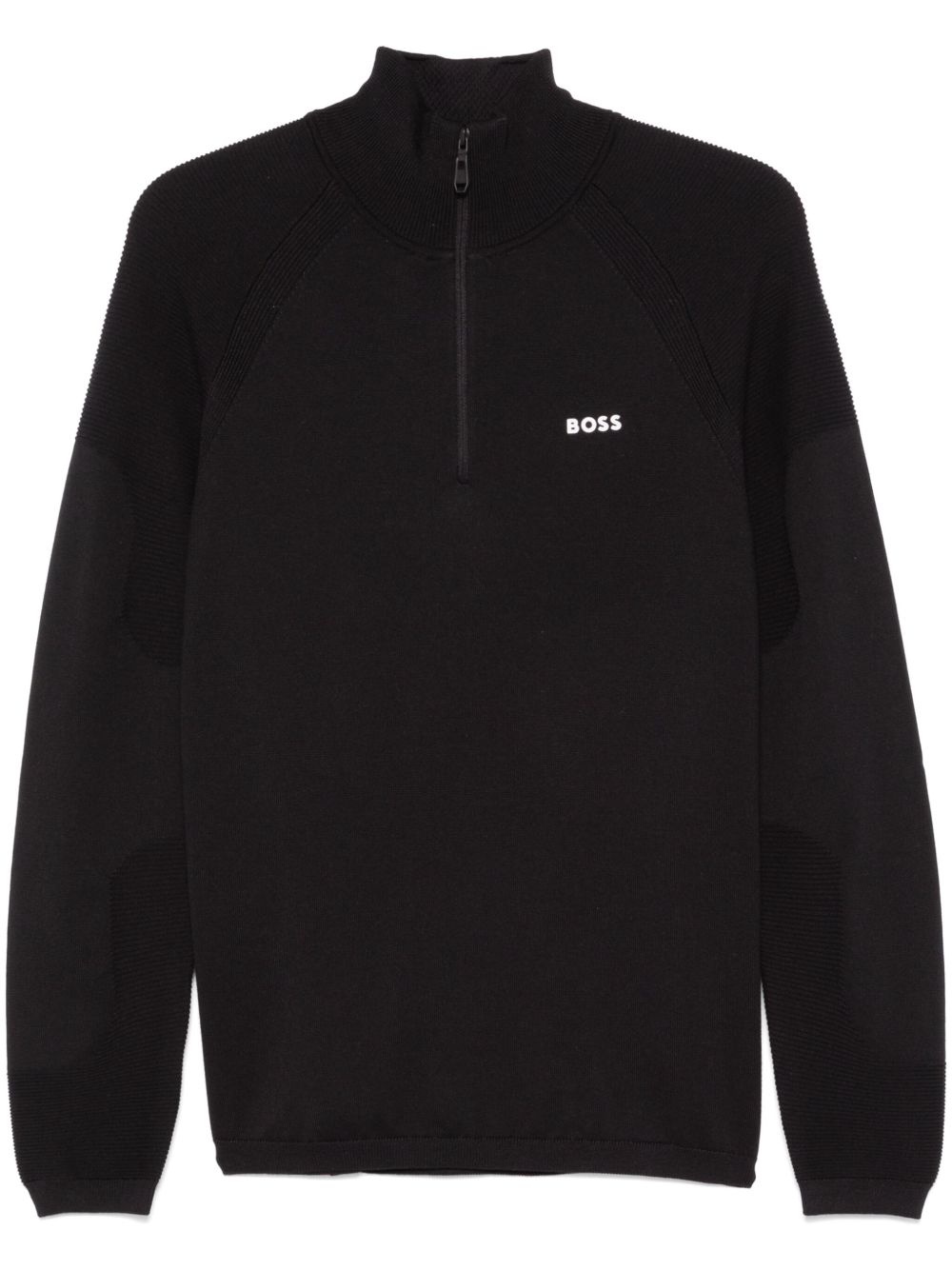 rubberised-logo sweater Highlights - Black - Cotton blend - Fine ribbed - Rubberised logo detail - Half front zip fastening - Ribbed trim - High neck - Long raglan sleeves - Ribbed panelling - Perforated detailing - Straight hem Imported Composition Cotton 57%, Polyester 43%