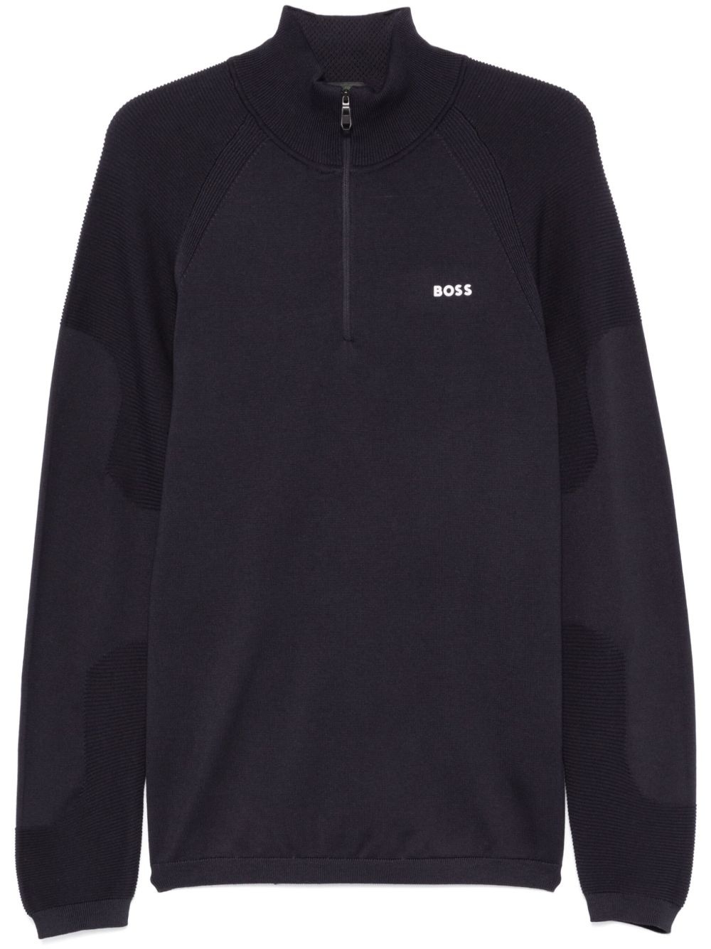 rubberised-logo sweater Highlights - Midnight blue - Cotton blend - Fine ribbed - Rubberised logo detail - Half front zip fastening - Ribbed trim - High neck - Long raglan sleeves - Ribbed panelling - Perforated detailing - Straight hem Imported Composition Cotton 57%, Polyester 43%