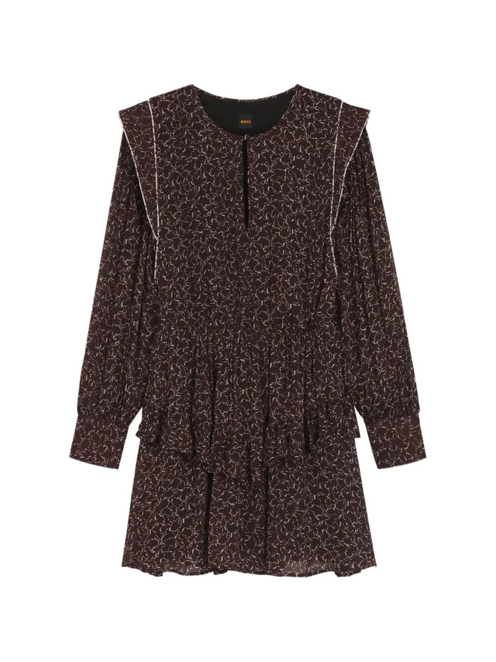ruffled floral dress Highlights - Brown - Floral print - Ruffled detail - Keyhole neck - Long sleeves - Tiered skirt Imported Composition Viscose 100% Washing instructions Hand Wash