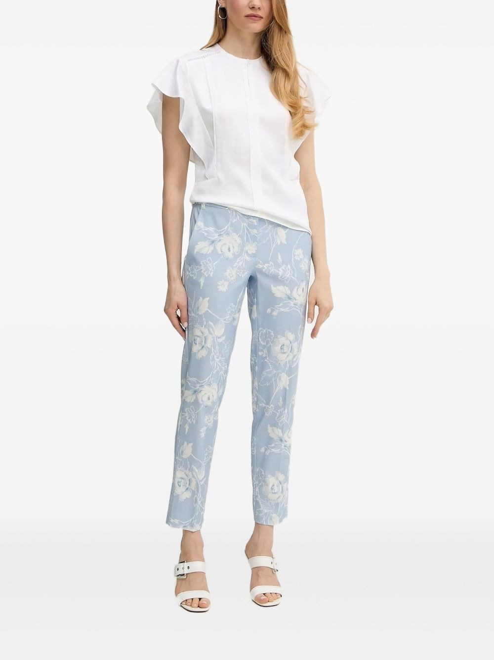 ruffled-sleeve blouse Highlights - White - Ruffled sleeves - Round neck - Perforated detail Imported Composition Viscose 59%, Linen/Flax 41% Washing instructions Read Manufacturer Guidelines