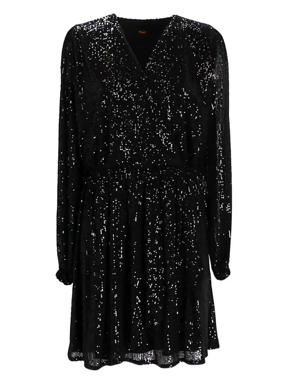sequin-embelished mini dress Highlights - Black - Sequin embellishment - V-neck - Long sleeves - Elasticated waist Imported Composition Outer: Polyester 95%, Spandex/Elastane 5% Lining: Polyester 100% Washing instructions Read Manufacturer Guidelines