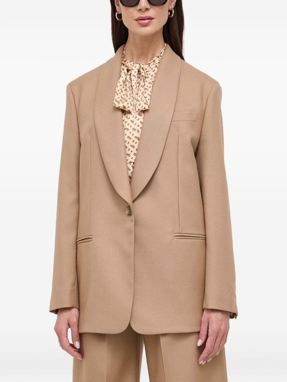 shawl-collar single-breasted blazer Highlights - Camel - Shawl lapels - Single-breasted fastening - Jet pockets Imported Composition Outer: Virgin Wool 100% Lining: Viscose 64%, Polyester 36% Washing instructions Read Manufacturer Guidelines