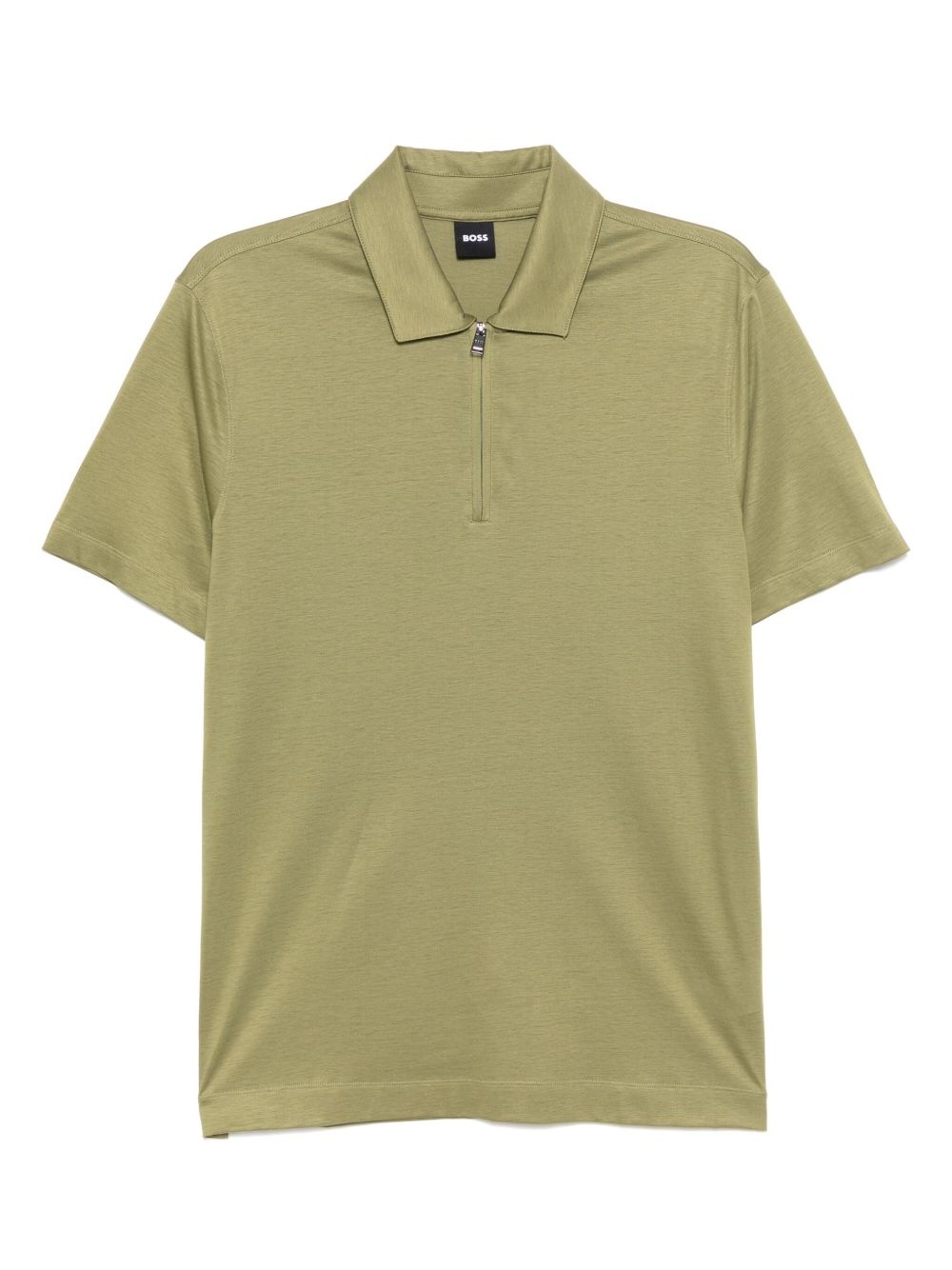 short-sleeved polo shirt Highlights - Moss green - Half front zip fastening - Polo collar - Stretch-jersey Imported Composition Lyocell 67%, Cotton 33% SIZE & FIT Model measurements Height 6 ft 2 in(1.87 m) Bust/Chest 33.07 in(84 cm) Hips 35.43 in(90 cm) Waist 26.77 in(68 cm) FittingInformation Designed for a regular fit, this polo shirt offers a comfortable loose fit throughout the body Made from a midweight non-stretch fabric, this piece offers minimal elasticity when worn