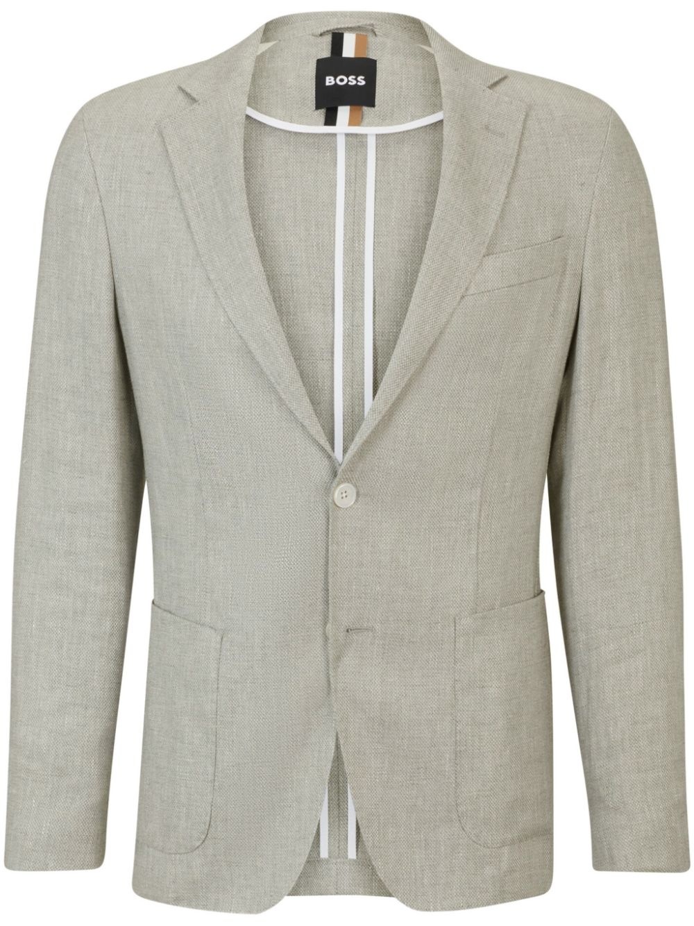 single-breasted blazer Highlights - Sage green - Lyocell-linen blend - Notched lapels - Front button fastening - Long sleeves - Buttoned cuffs - Chest welt pocket - Two front patch pockets - English rear vents - Unlined Imported Composition Outer: Linen/Flax 61%, Lyocell 36%, Polyamide 2%, Elastane 1% Lining: Polyester 50%, Cotton 50% SIZE & FIT FittingInformation Designed for a slim fit, offering a comfortable fit that sits just away from the body The vented hem offers movement at the rear Made from a lightweight stretch fabric, this piece offers elasticity and flexibility when worn This piece fits true to size – take your usual size