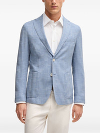 single-breasted blazer Highlights - Light blue - Front button fastening - Chest welt pocket - Two front patch pockets - English rear vents Imported Composition Outer: Virgin Wool 38%, Cotton 30%, Viscose 25%, Linen/Flax 7% Lining: Polyester 65%, Cotton 35% Washing instructions Read Manufacturer Guidelines