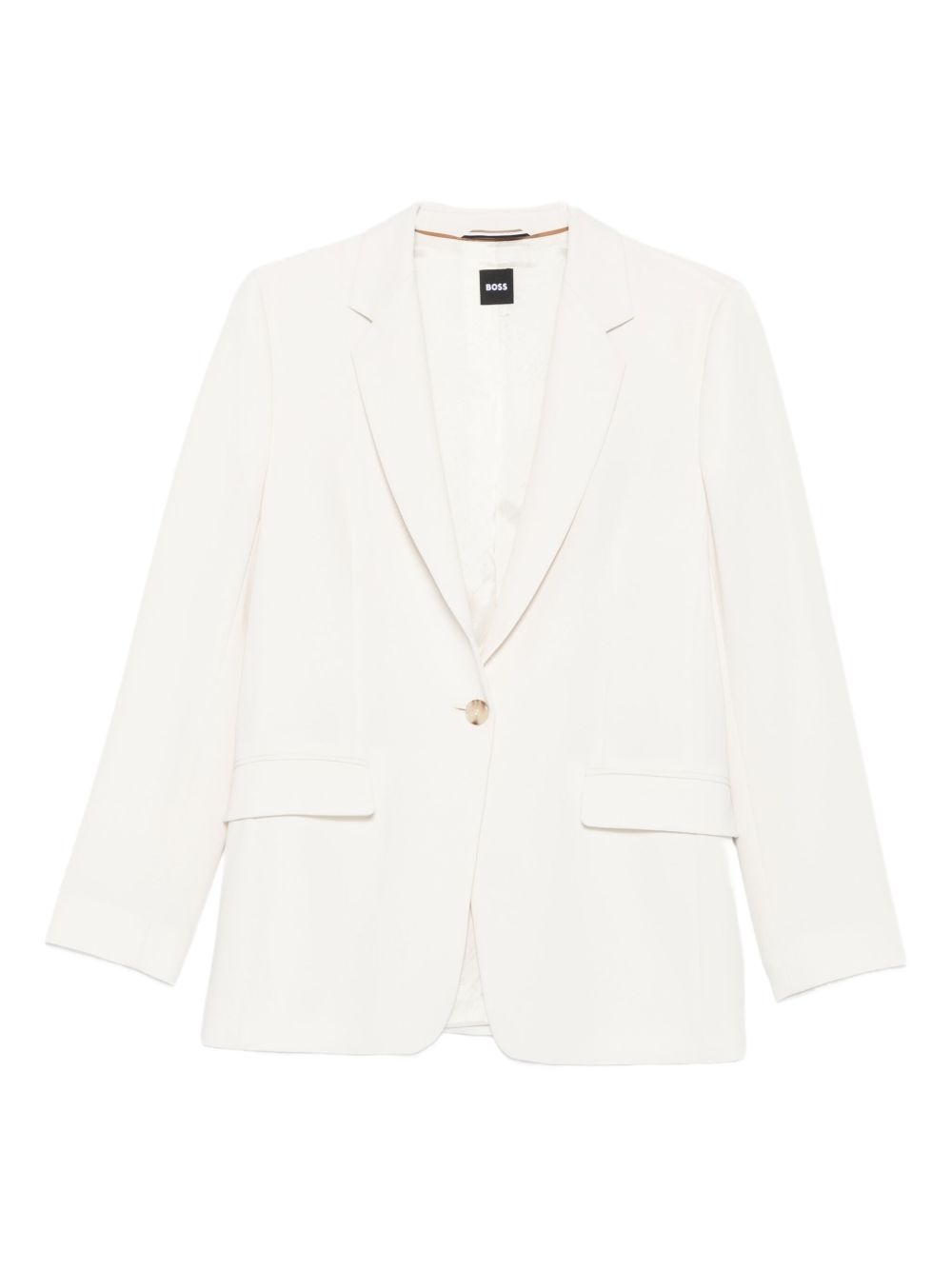 single-breasted blazer Highlights - White - Single-breasted - Notched lapel - Long sleeves - Button fastening - Flap pockets Imported Composition Lining: Viscose 54%, Polyamide 43%, Elastane 3% Outer: Triacetate 69%, Polyester 31% SIZE & FIT Model measurements Height 5 ft 10 in(1.78 m) Bust/Chest 33.85 in(86 cm) Hips 36.61 in(93 cm) Waist 26.77 in(68 cm) Washing instructions Dry Clean Only