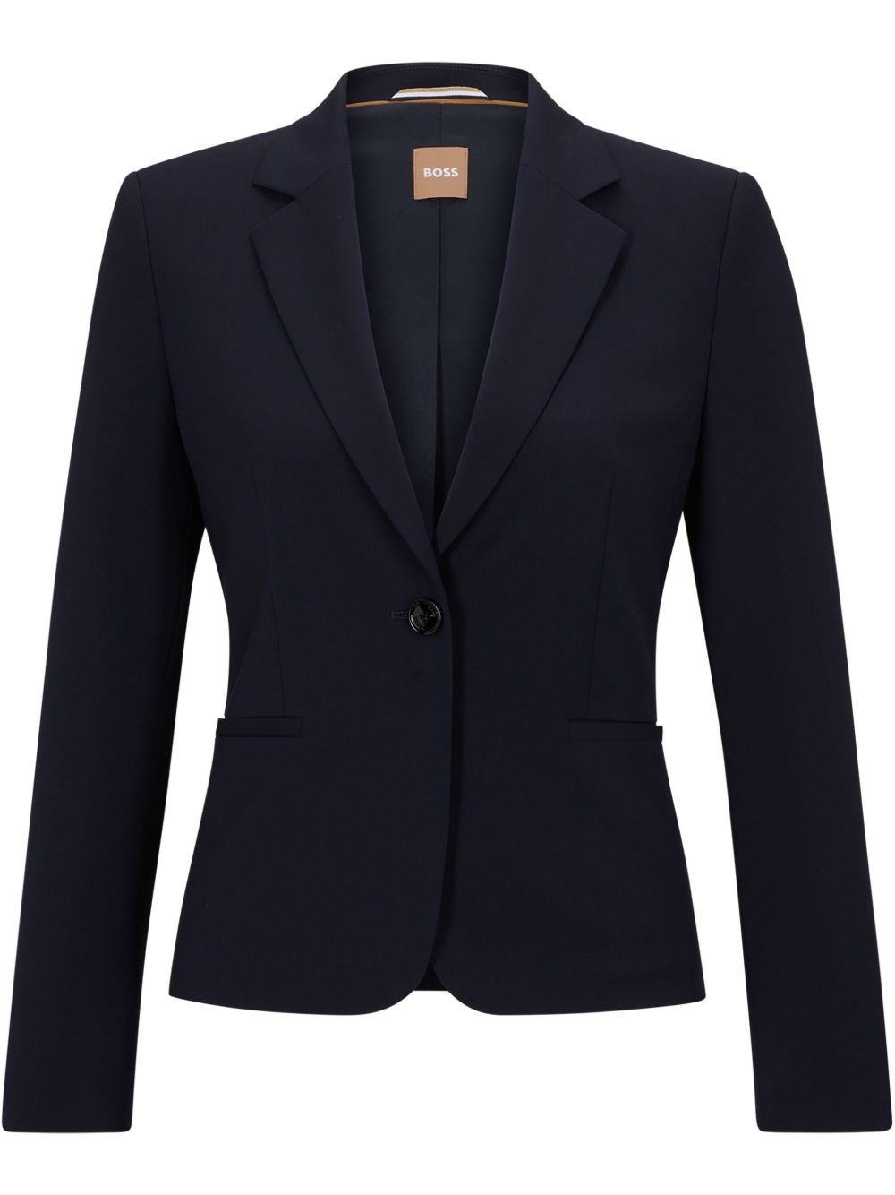 single-breasted blazer Highlights - Midnight blue - Front button fastening - Two front jetted pockets - Long sleeves - Notched lapels Imported Composition Virgin Wool 100%