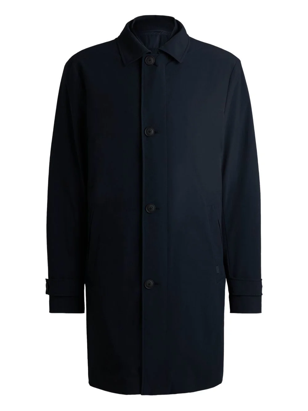 single-breasted coat Highlights - Dark blue - Button fastening - Long sleeves Imported Composition Outer: Recycled Polyacrylic 88%, Elastane 12% Lining: Polyester 100% Washing instructions Read Manufacturer Guidelines