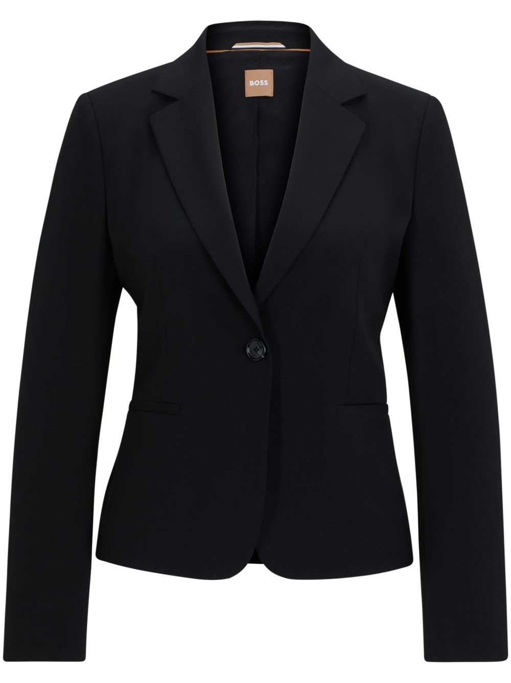 single-breasted notch-lapels blazer Highlights - Black - Virgin wool - Front button fastening - Notched lapels - Long sleeves - Buttoned cuffs - Two front jetted pockets - Straight hem Imported Composition Lining: Viscose 54%, Polyamide 43%, Spandex/Elastane 3% Outer: Virgin Wool 100%