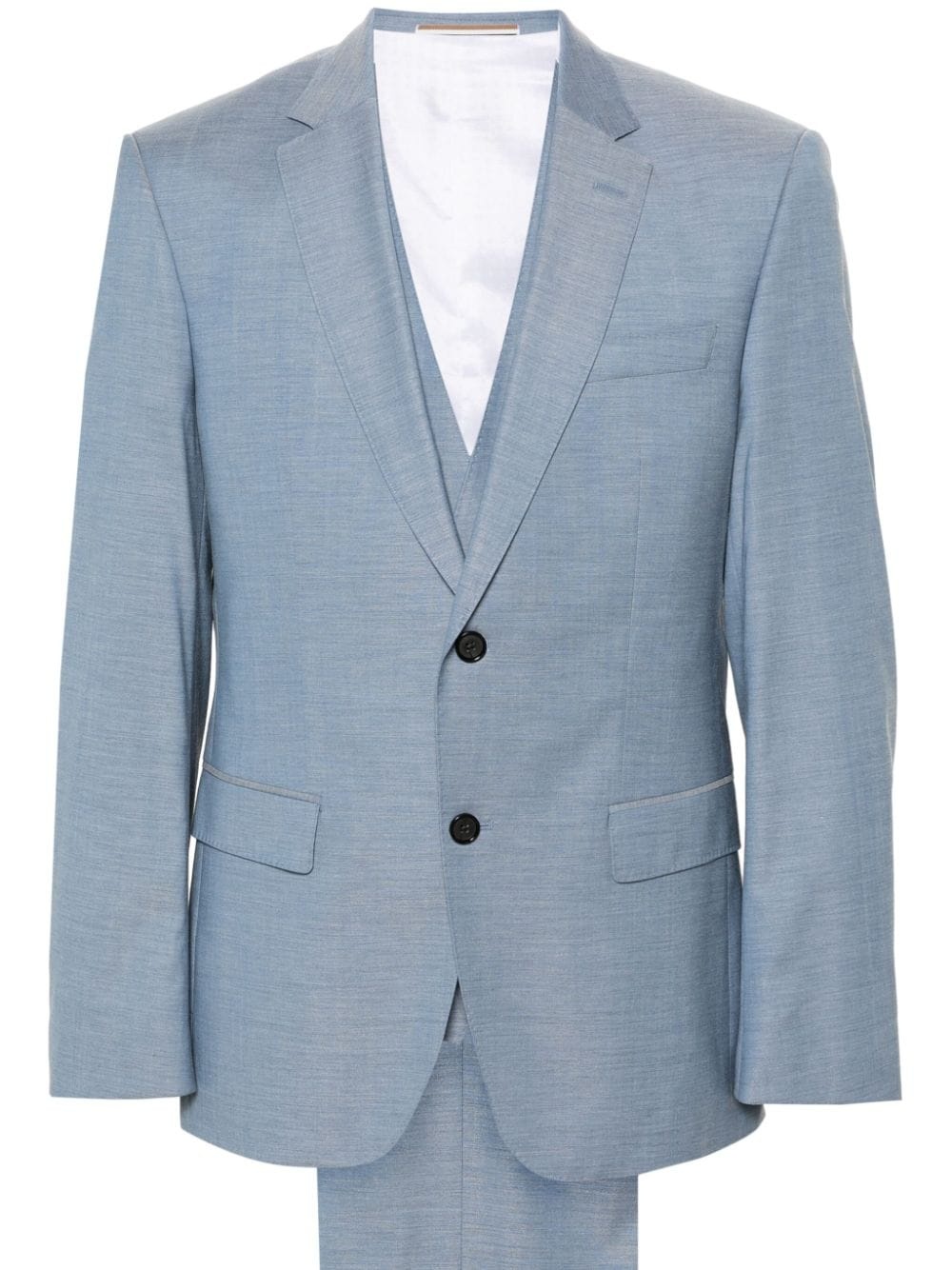 single-breasted slim-fit suit Highlights - Blue/white - Virgin wool blend Imported Composition Outer: Virgin Wool 57%, Viscose 40%, Elastane 3% Lining: Viscose 65%, Polyester 35% SIZE & FIT Model measurements Height 6 ft 2 in(1.87 m) Bust/Chest 37.79 in(96 cm) Hips 37.79 in(96 cm) Waist 30.31 in(77 cm) FittingInformation Tailored for a slim fit, offering a comfortable fit that sits just away from the body The unfinished hems allow for the length to be altered Made from a midweight fabric This piece fits true to size – take your usual size