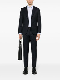 single-breasted virgin wool suit Highlights - Blue, black - Virgin wool - Patterned jacquard Imported Composition Outer: Virgin Wool 100% Lining: Viscose 100%, Polyester 65%, Cotton 35% SIZE & FIT Model measurements Height 6 ft 1 in(1.86 m) Bust/Chest 37.4 in(95 cm) Hips 36.22 in(92 cm) Waist 29.52 in(75 cm) FittingInformation Tailored for a slim fit, offering a comfortable fit that sits just away from the body The unfinished hems allow for the length to be altered Made from a midweight non-stretch fabric This piece fits true to size – take your usual size