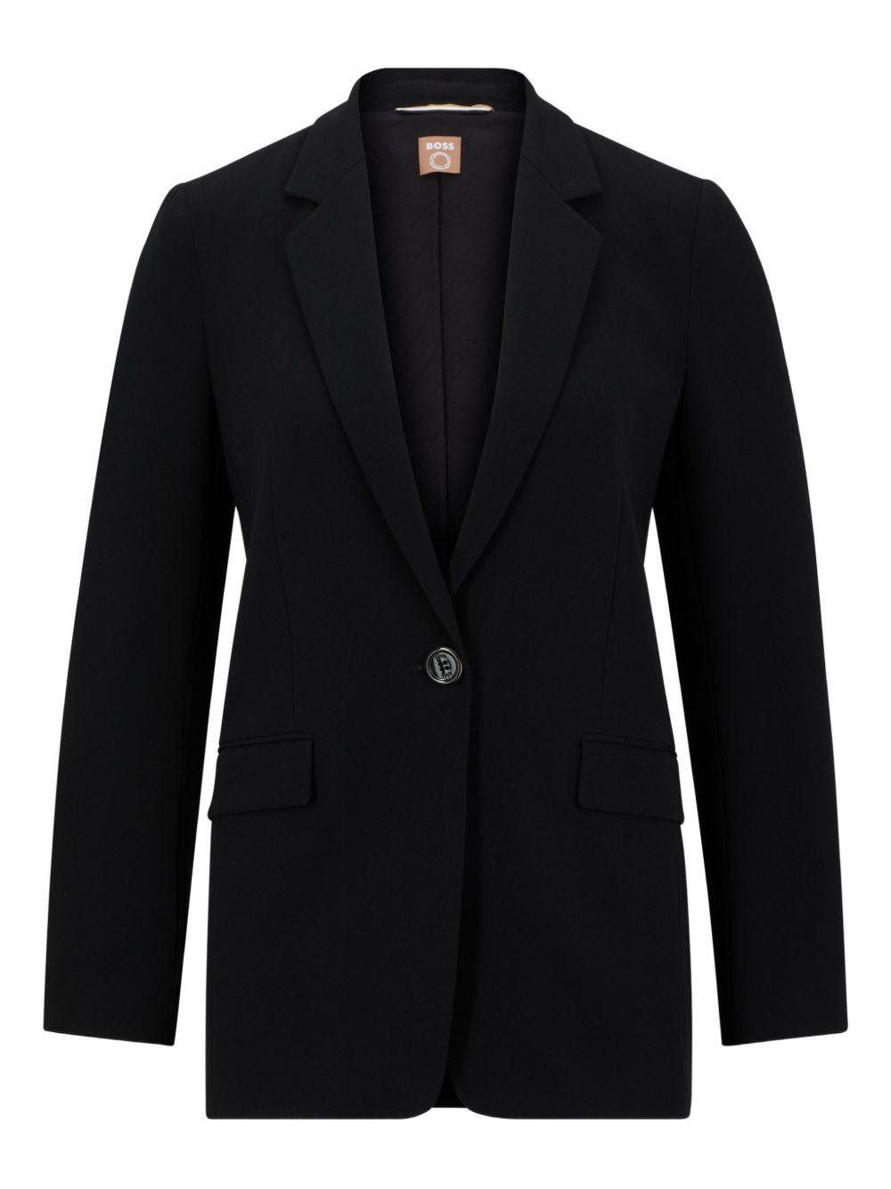 single-button notched-lapel jacket Highlights - Black - Single button fastening - Notched lapel - Long sleeves - Straight hem - Structured shoulders Imported Composition Outer: Triacetate 69%, Polyester 31% Lining: Cotton 100%, Viscose 54%, Polyamide 43%, Elastane 3% Washing instructions Dry Clean Only