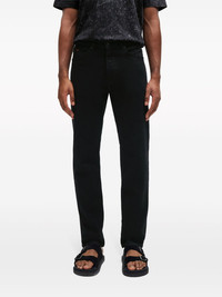 slim-cut jeans Highlights - Black - Stretch-design - Concealed fly and button fastening - Belt loops - Classic five pockets - Logo patch to the rear - Slim cut Imported Composition Polyester 92%, Elastane 8% Washing instructions Read Manufacturer Guidelines