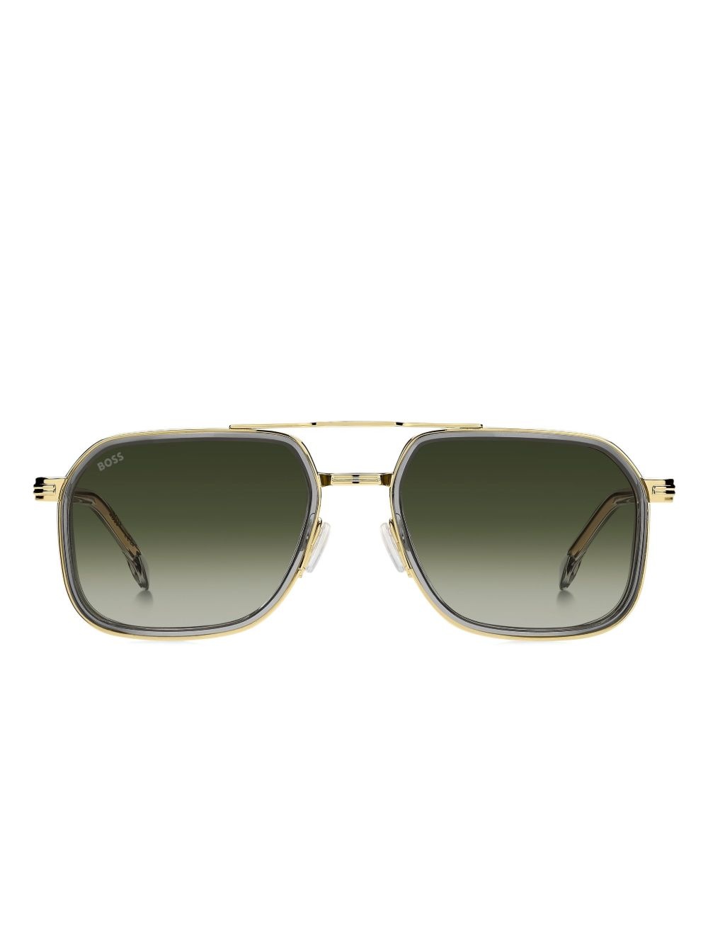 square-frame sunglasses Highlights - Gold-tone - Green tinted lenses - Nose pads - Curved tips - These glasses come with a protective case. Imported Composition Steel 100%, Acetate 100% SIZE & FIT Measurement Arm Length 59.09 in(150.1 cm) Bridge Width 0.74 in(1.9 cm) Lens Diameter 2.16 in(5.5 cm)