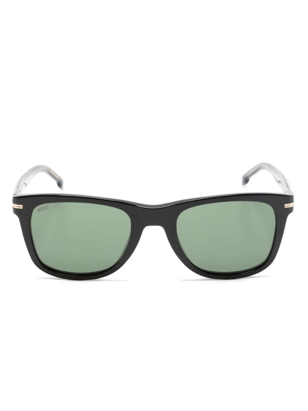 square-frame tinted sunglasses Highlights - Black - Square frame - Tinted lenses - Logo print to the front - Curved tips - These glasses come with a protective case. Imported Composition Plastic 100% SIZE & FIT Measurement Arm Length 5.7 in(14.5 cm) Bridge Width 0.82 in(2.1 cm) Lens Diameter 2.04 in(5.2 cm) Total Width 5.51 in(14 cm)