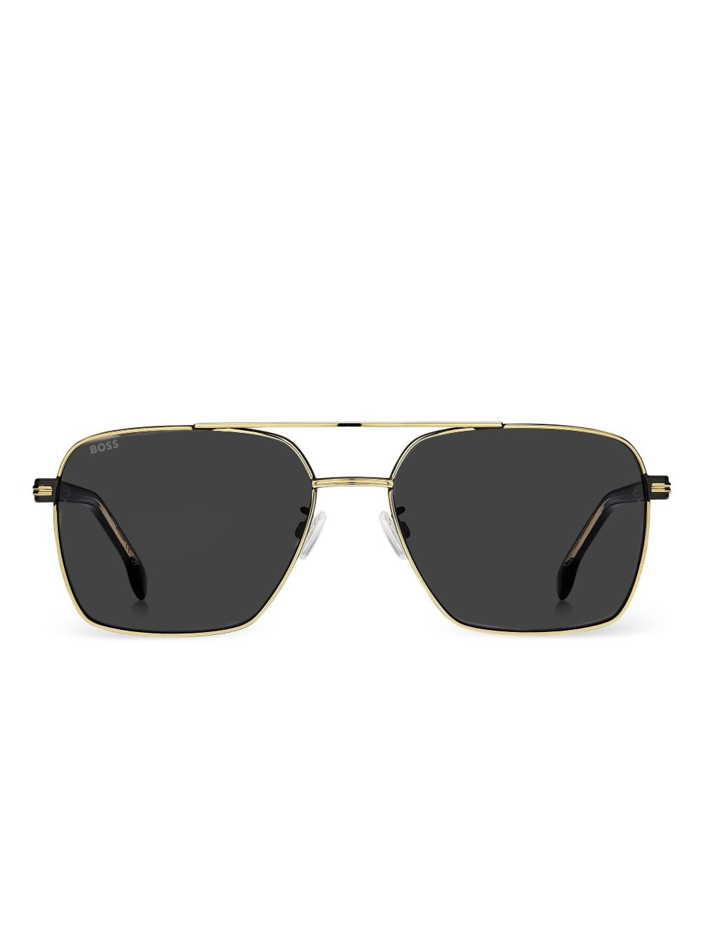 square sunglasses Highlights - Black - Gold-tone frame detail - Square frame - Grey lenses - Nose pads - These glasses come with a protective case. Imported Composition Metal 100%, Acetate 100%, stainless steel 100% SIZE & FIT Measurement Arm Length 5.9 in(15 cm) Bridge Width 0.66 in(1.7 cm) Lens Diameter 2.28 in(5.8 cm)