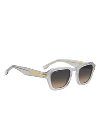 square sunglasses Highlights - Grey - Square frame - Gold-tone detailing - Brown gradient lenses - Nose pads - Subtle branding - These glasses come with a protective case. Imported Composition Acetate 100% SIZE & FIT Measurement Arm Length 5.9 in(15 cm) Bridge Width 0.9 in(2.3 cm) Lens Diameter 1.92 in(4.9 cm)