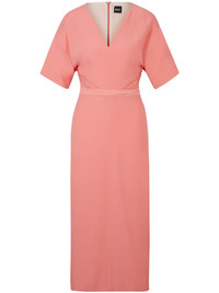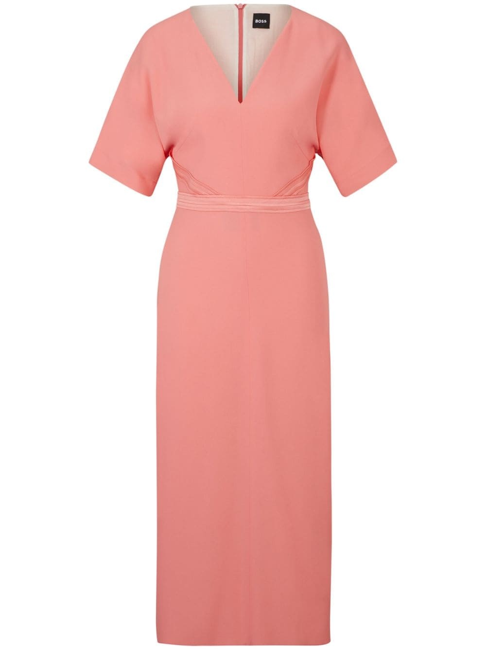 stitched V-neck midi dress Highlights - Salmon pink - Decorative stitching - V-neck - Concealed rear zip fastening - Short sleeves - Straight hem - Mid-length Imported Composition Outer: Acetate 72%, Viscose 28% Lining: Viscose 64%, Polyester 36%