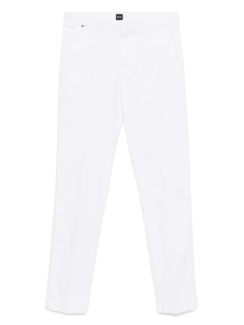 straight-leg trousers Highlights - White - Concealed front button, hook and zip fastening - Two side slit pockets - Two rear welt pockets - Belt loops Imported Composition Cotton 98%, Elastane 2% Washing instructions Machine Wash