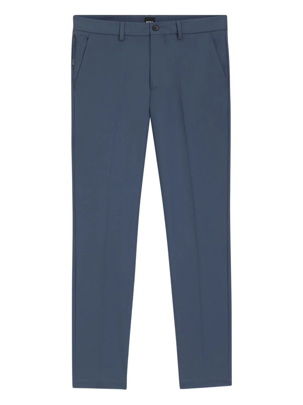 straight-leg trousers Highlights - Blue - Front button and zip fastening - Side slit pockets - Rear welt pockets - Belt loops Imported Composition Cotton 60%, Recycled Polyamide 33%, Elastane 7% Washing instructions Read Manufacturer Guidelines