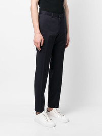 straight-leg wool trousers Highlights - Midnight blue - Virgin wool - Tailored cut - Straight leg - Concealed front fastening - Belt loops - Two side slit pockets - Two rear welt pockets - Pressed crease Imported Composition Outer: Virgin Wool 100% Lining: Viscose 100% SIZE & FIT Model measurements Height 6 ft 3 in(1.91 m) Bust/Chest 37 in(94 cm) Hips 37.79 in(96 cm) Waist 28.34 in(72 cm) FittingInformation Designed for a slim fit, offering a comfortable fit that sits just away from the leg The unfinished hems allow for the length to be altered Made from a midweight non-stretch fabric This piece fits true to size – take your usual size Washing instructions Dry Clean Only