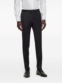straight-leg wool trousers Highlights - Boss men's cool wool trousers ‘h-wenten’, midnight black, boss one the suit, tailored cut, cool wool, serge weave for a formal yet versatile style, hook and zip fastening, pleats, flush side pockets, back pockets, belt loops, 17cm hem, extra slim fit. delicate chemical dry cleaning100% wool; Imported Composition Lining: Viscose 100% Outer: Virgin Wool 100% SIZE & FIT FittingInformation Designed for a slim fit, offering a comfortable fit that sits just away from the leg The unfinished hems allow for the length to be altered Made from a midweight non-stretch fabric