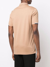 stripe-trimmed polo shirt pale beige/navy blue/off white cotton stripe trim embroidered logo at the chest polo collar front button placket short sleeves straight hem Imported Composition Cotton 100% SIZE & FIT Model measurements Height 6 ft 2 in(1.89 m) Bust/Chest 35.43 in(90 cm) Hips 36.61 in(93 cm) Waist 28.74 in(73 cm) FittingInformation This piece fits true to size. We recommend you get your regular size Cut for a relaxed fit Made with a mid-weight fabric Washing instructions Machine Wash