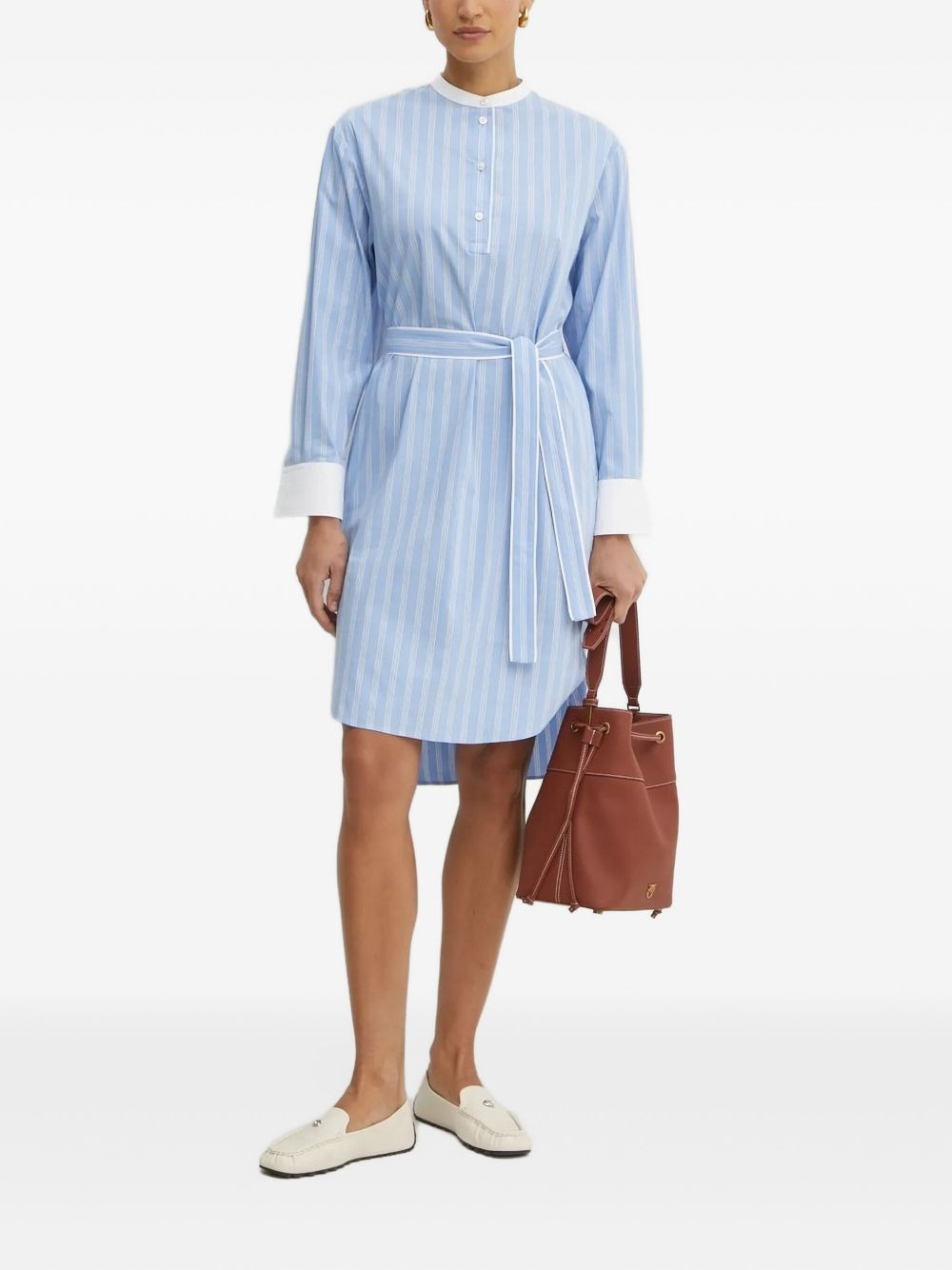 striped belted shirt dress Highlights - Light blue - White striped pattern - Button placket - Long sleeves - Contrasting white cuffs - Self-tie belt Imported Composition Cotton 100% Washing instructions Read Manufacturer Guidelines