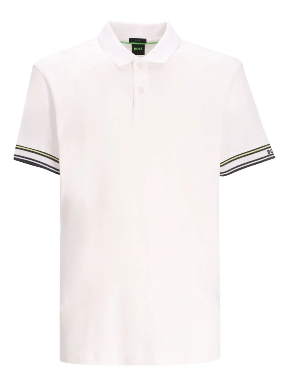 striped-cuff polo shirt Highlights - White - Short sleeves - Striped cuffs - Polo collar Imported Composition Cotton 100% Washing instructions Machine Wash