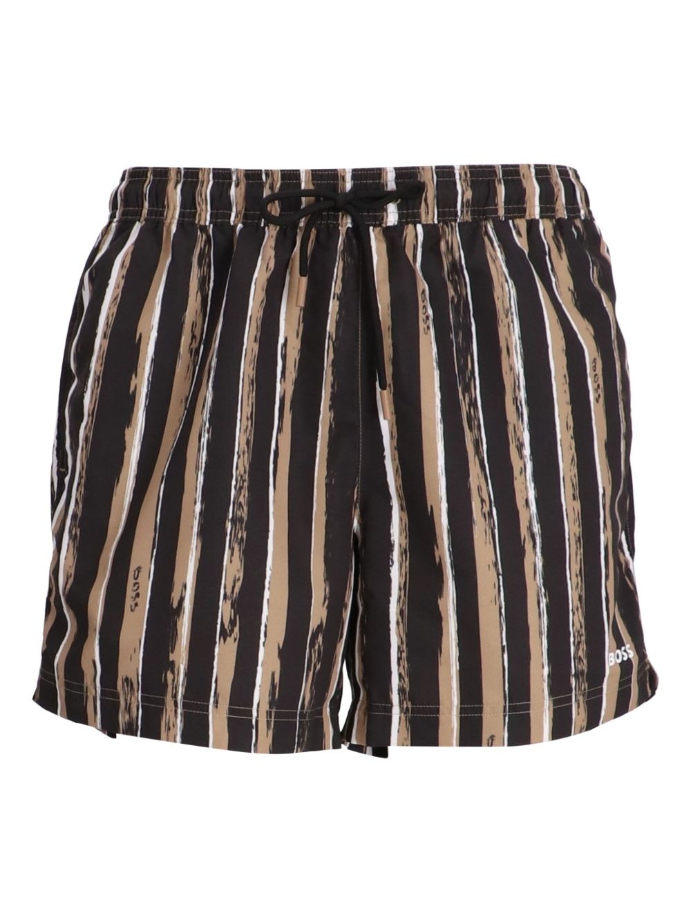 striped drawstring shorts Highlights - Black/beige - Vertical stripes - Beige stripes - Drawstring fastening - Logo print - Patch pocket - Be mindful to try on swimwear over your own garments. Imported Composition Lining: Recycled Polyester 100% Outer: Recycled Polyester 100% Washing instructions Read Manufacturer Guidelines