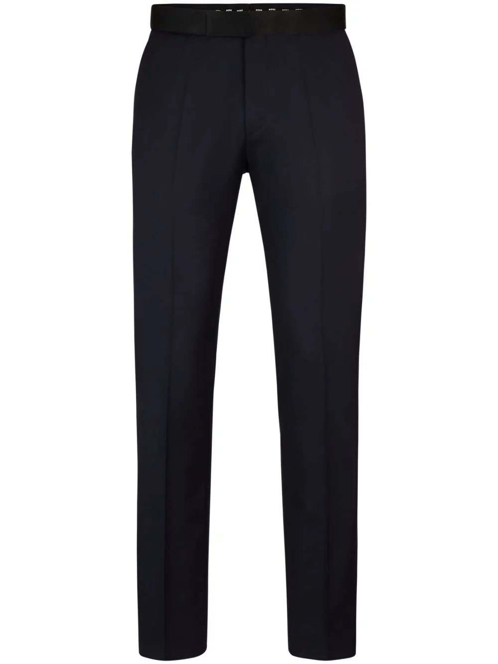 tailored virgin wool trousers Highlights - Navy blue - Virgin wool - Satin trim - Pressed crease - Mid-rise - Concealed front fastening - Two side slit pockets - Two rear welt pockets - Tailored cut - Straight hem Imported Composition Virgin Wool 100%