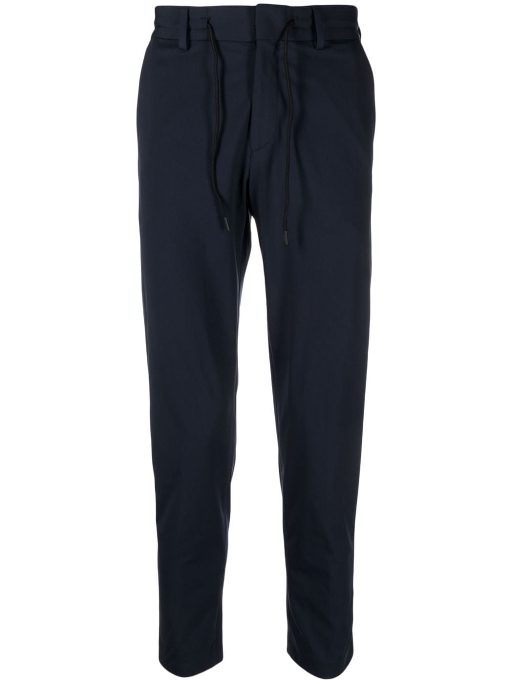 technical-jersey slim-cut trousers Highlights - Navy blue - Technical jersey - Water-repellent - Mini logo tag to the rear - Belt loops - Drawstring waist - Rear elasticated waistband - Pressed crease - Concealed front fastening - Slim cut - Two side slit pockets - Two rear welt pockets Imported Composition Outer: Polyamide 85%, Elastane 15% Lining: Polyester 100% SIZE & FIT Model measurements Height 6 ft 1 in(1.86 m) Bust/Chest 37.4 in(95 cm) Hips 36.22 in(92 cm) Waist 29.52 in(75 cm) FittingInformation Designed for a slim fit, offering a comfortable fit that sits just away from the leg Adjust this piece’s waistband to your preference using the drawstring Made from a midweight stretch fabric, this piece offers elasticity and flexibility when worn This piece fits true to size – take your usual size