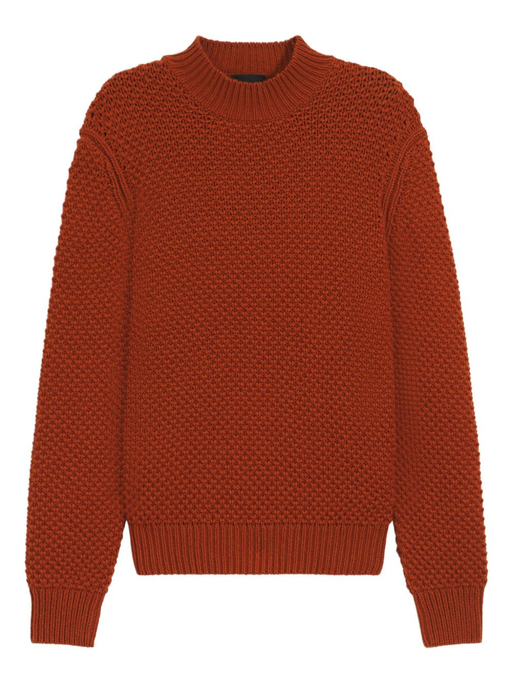 textured-knit mock-neck sweater Highlights - Rust - Mock neck - Textured knit - Long sleeves - Ribbed cuffs - Ribbed hem Imported Composition Virgin Wool 100% Washing instructions Read Manufacturer Guidelines